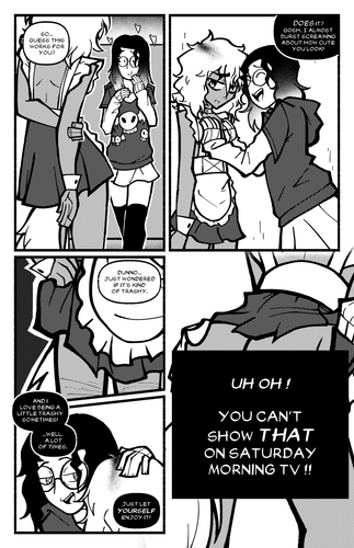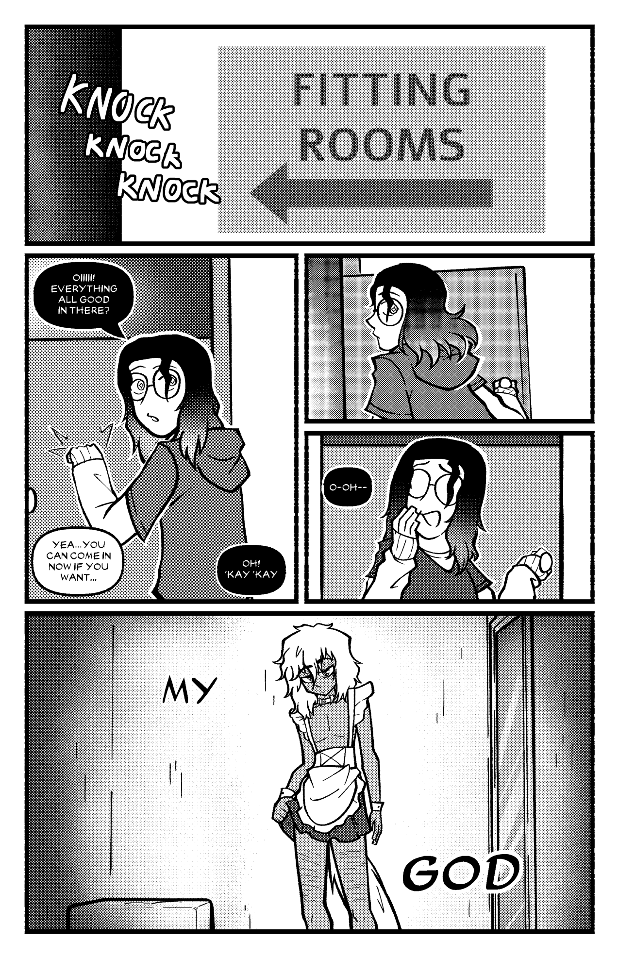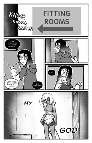A simple, fourteen page comic of boy and a girl doing bonding activities in a clothing store's fitting room.